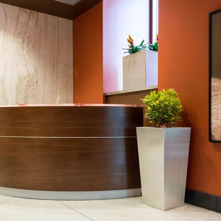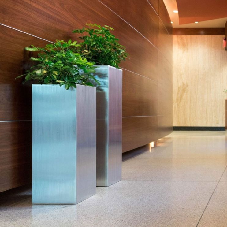 NewPro Containers offers a complete line of custom fabricated aluminum planters including divider rectangles, square cubes, tall tapered towers, cylinders and more. These commercial-grade aluminum plant containers can be fabricated to your specifications. Our metal planters can be made in any shape, any size, any color. Log in or register to see wholesale pricing for landscapers, interior plantscapers, landscape architects and other plant professionals.