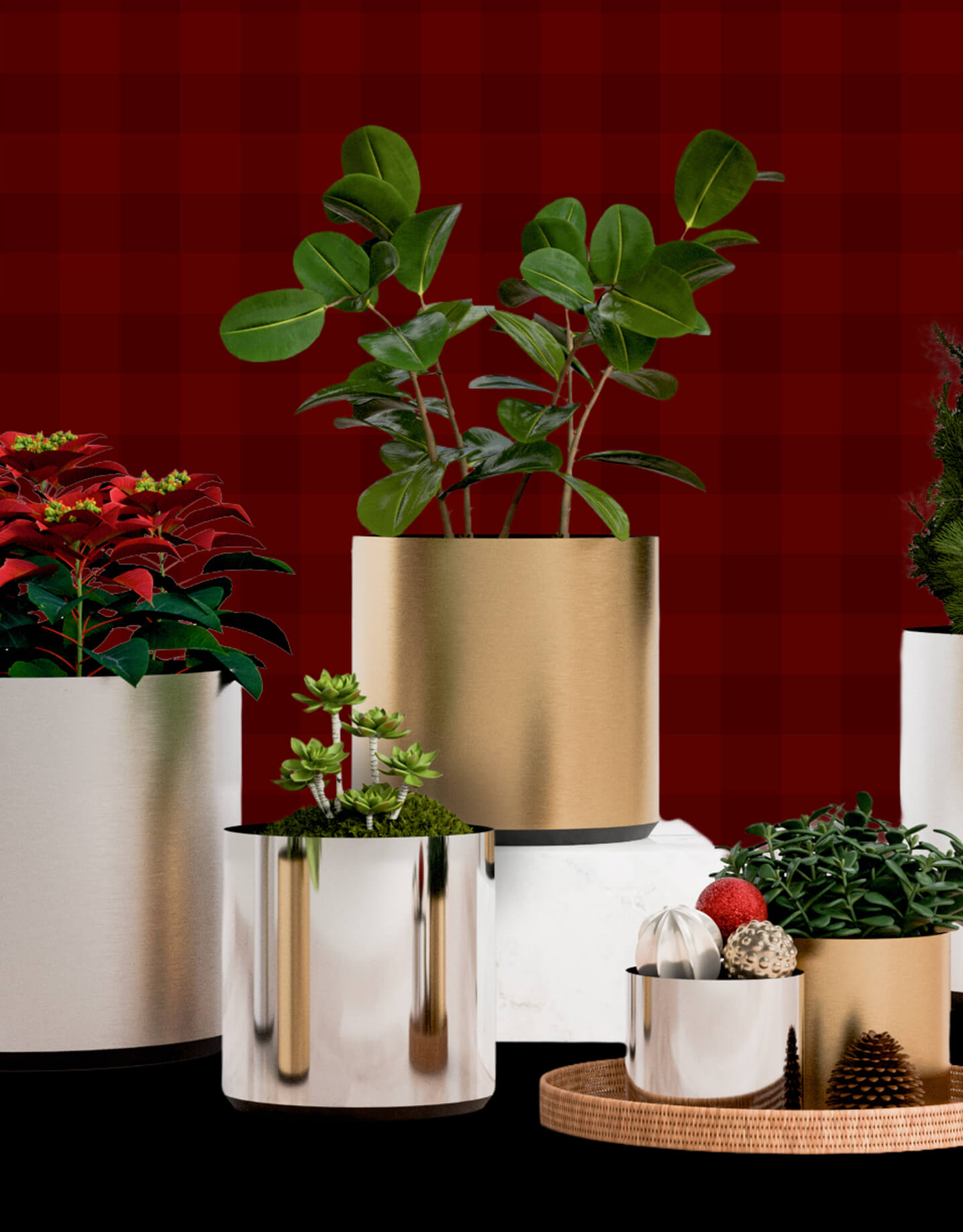 Add the high-end look of chrome, brass, and more to indoor holiday installations at an affordable price.